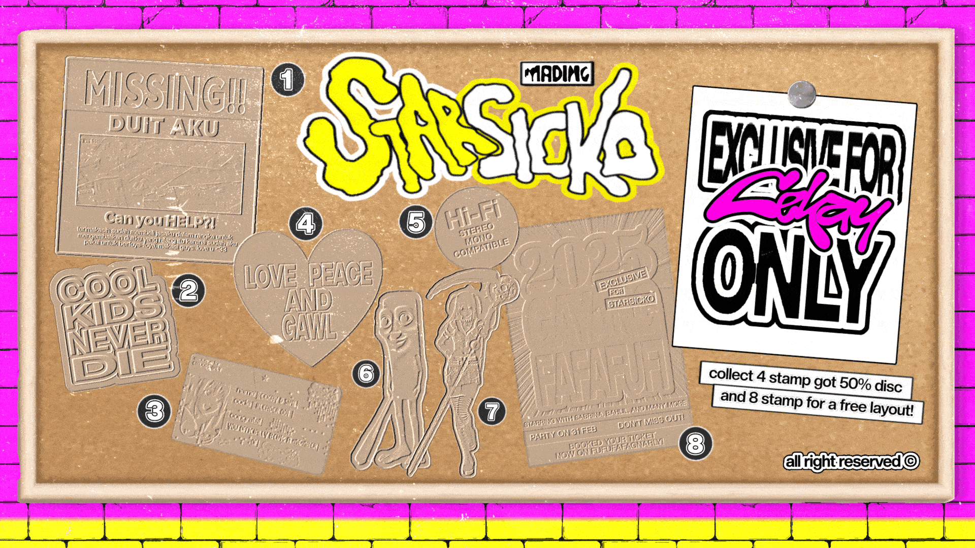 Mengumpulkan 8 stamp akan mendapatkan 1 layout free dari STARSICKO.
